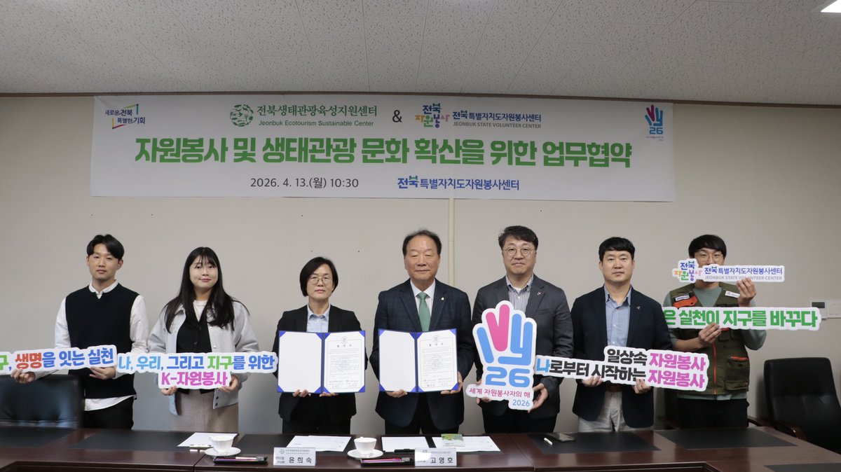 이번 협약은 자원봉사 활동과 생태관광을 연계해 도민과 관광객이 함께 참여하는 실천 중심의 환경보호 문화를 확산하고 전북 특별자치도만의 지속가능한 생태관광 모델을 구축하기 위해 마련됐다.