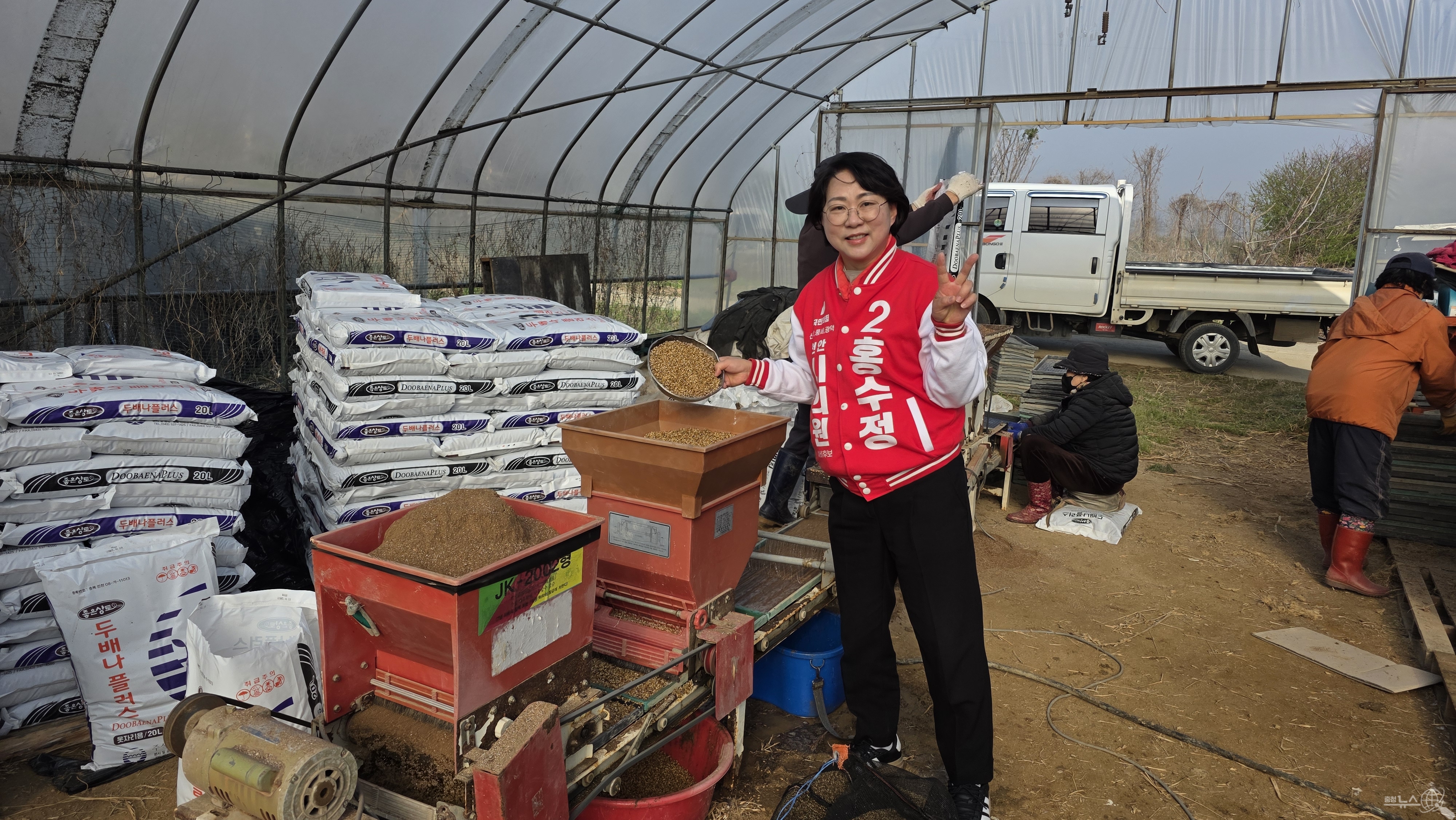6.3 지방선거 천안시의원 선거에 출마한 국민의힘 홍수정 예비후보가 13일과 14일 진행되는 당내 경선을 앞둔 지난12일, 휴일도 잊은 채 농번기를 맞아 풍세면 두남1리 벼 파종 현장을 찾아 현장 중심 행보를 이어갔다.