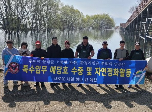이날 회원들은 예당호 주변 산책로뿐만 아니라 수변 내부까지 들어가 바지장화를 착용한 채 각종 생활 쓰레기와 부유물을 수거하는 등 적극적인 정화 활동을 펼쳤으며 특히 물속에 방치된 폐기물까지 일일이 수거하며 구슬땀을 흘렸다.