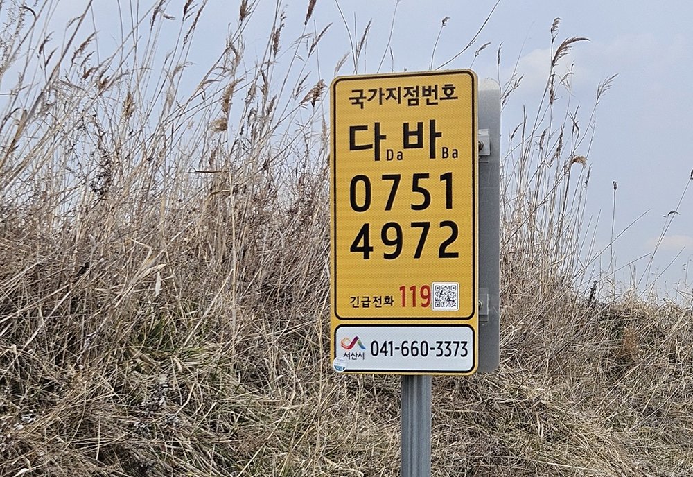 국가지점번호판은 산악·해안 등 주소 확인이 어려운 지역에서 위치를 쉽고 정확히 전달할 수 있도록 문자 2자리와 숫자 8자리로 구성된 위치표시 체계다.