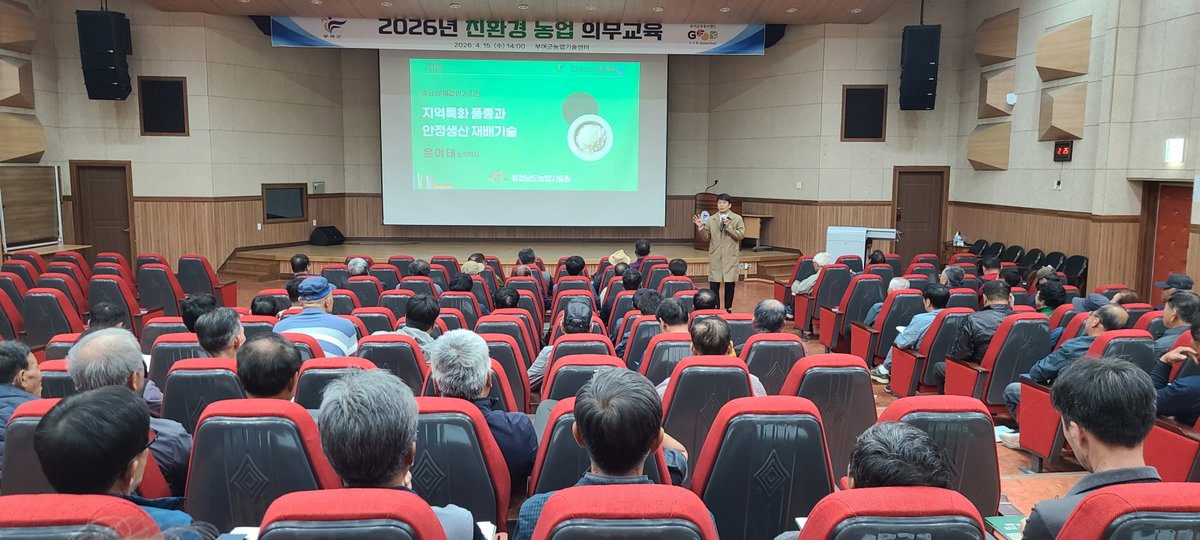 [충청뉴스큐] 부여군은 지난 15일 오후 2시 농업기술센터 대강당에서 관내 친환경 농업인 및 교육 희망 농가 100여명을 대상으로 ‘2026년 친환경 농업 의무교육’을 개최했다.