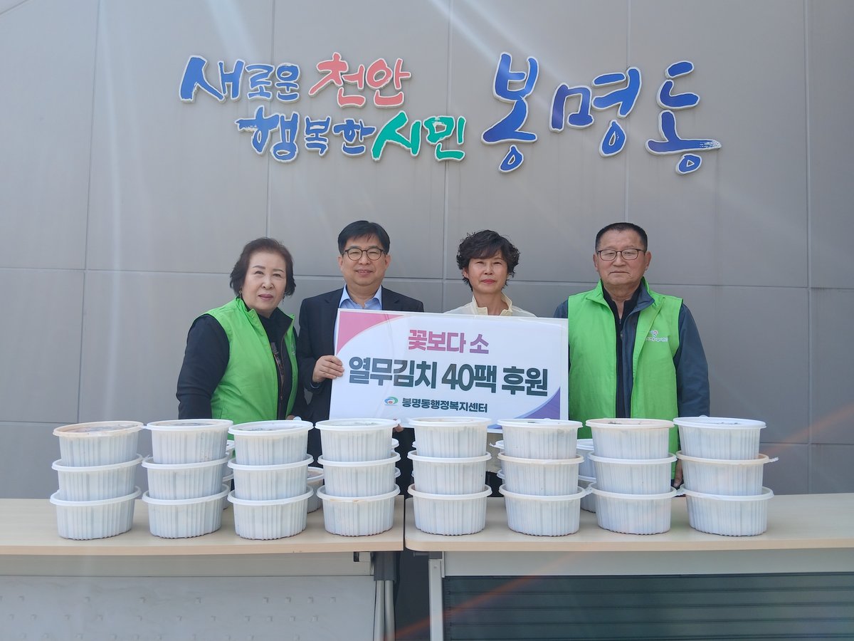 송민철 봉명동장은 “지역 내 어려운 이웃을 위해 따뜻한 나눔을 실천해 주셔서 감사드린다”며 “앞으로도 민·관이 함께하는 나눔문화가 확산될 수 있도록 노력할 것”이라고 말했다.