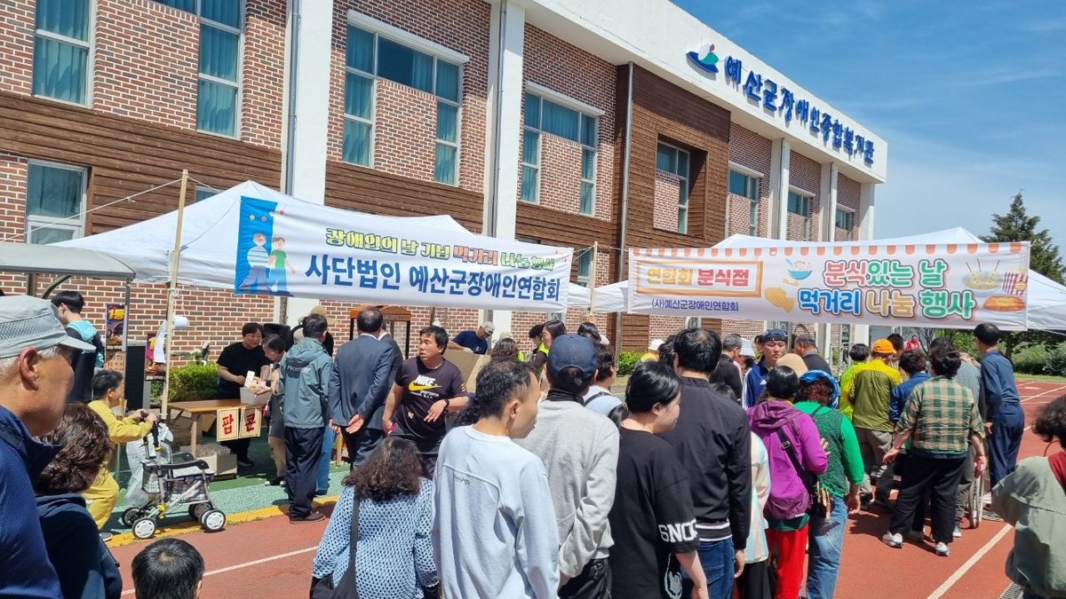 [충청뉴스큐] 예산군장애인연합회는 지난 16일 예산군 장애인종합복지관 운동장에서 2026년 장애인의 날 기념 먹거리 나눔 행사를 개최했다.