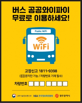 광주광역시는 전국 최초로 관내 101개 노선 1044대 모든 시내버스에 누구나 무료로 이용할 수 있는 공공 와이파이 서비스를 시범 운영한다.