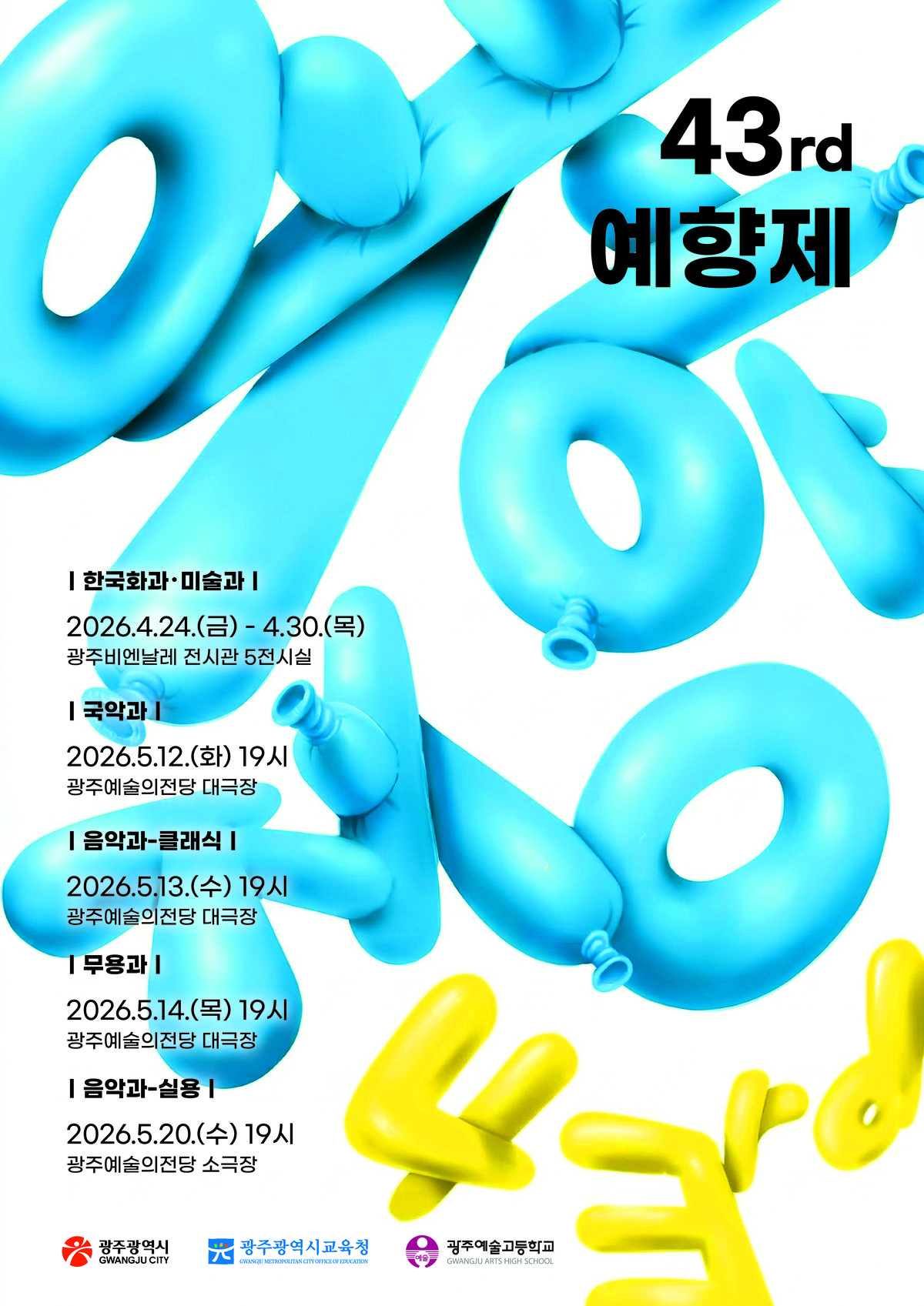 [충청뉴스큐] 광주예술고등학교는 오는 24일부터 5월 20일까지 광주비엔날레 전시관 5전시실과 광주예술의전당 소극장·대극장에서 ‘제43회 예향제’를 개최한다.