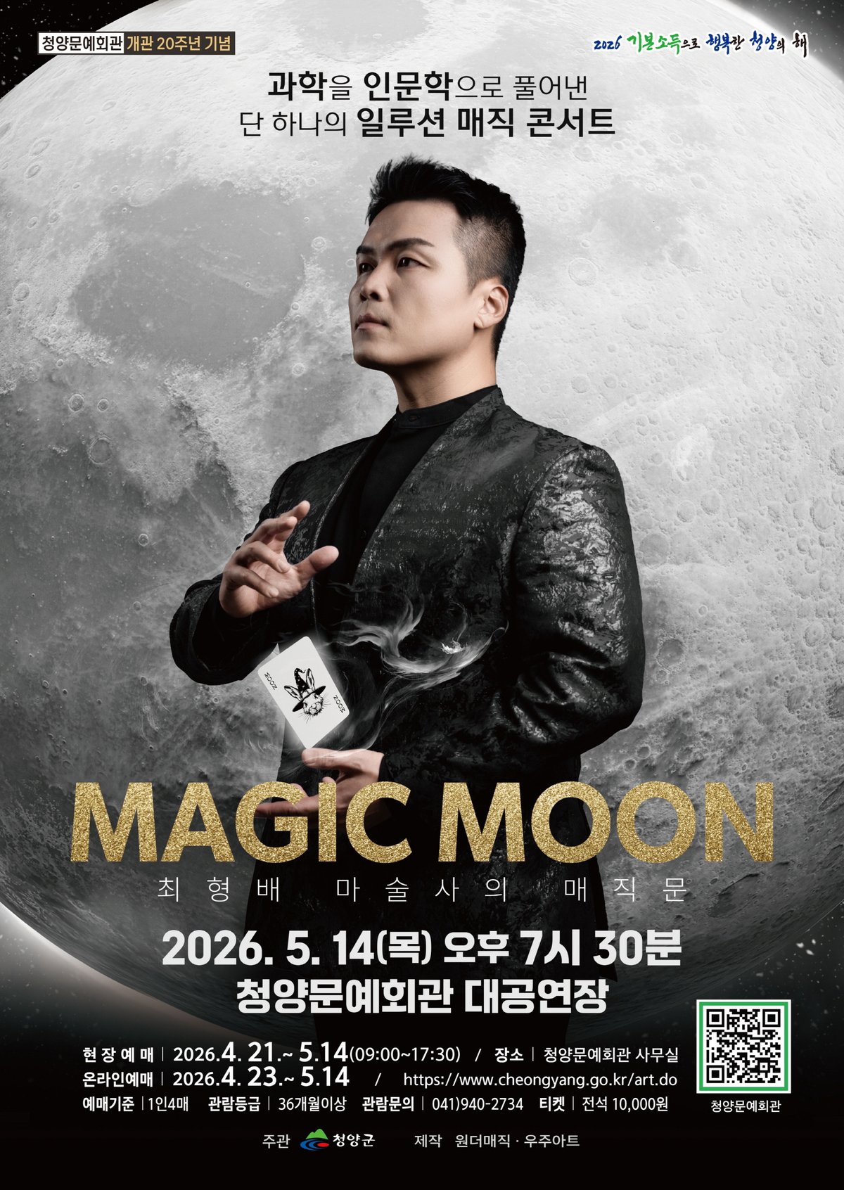 [충청뉴스큐] 청양군이 5월 가정의 달을 맞아 온 가족이 함께 환상적인 마술의 세계를 경험할 수 있는 최형배 마술사의 일루션 매직쇼 ‘매직 문’을 개최한다.