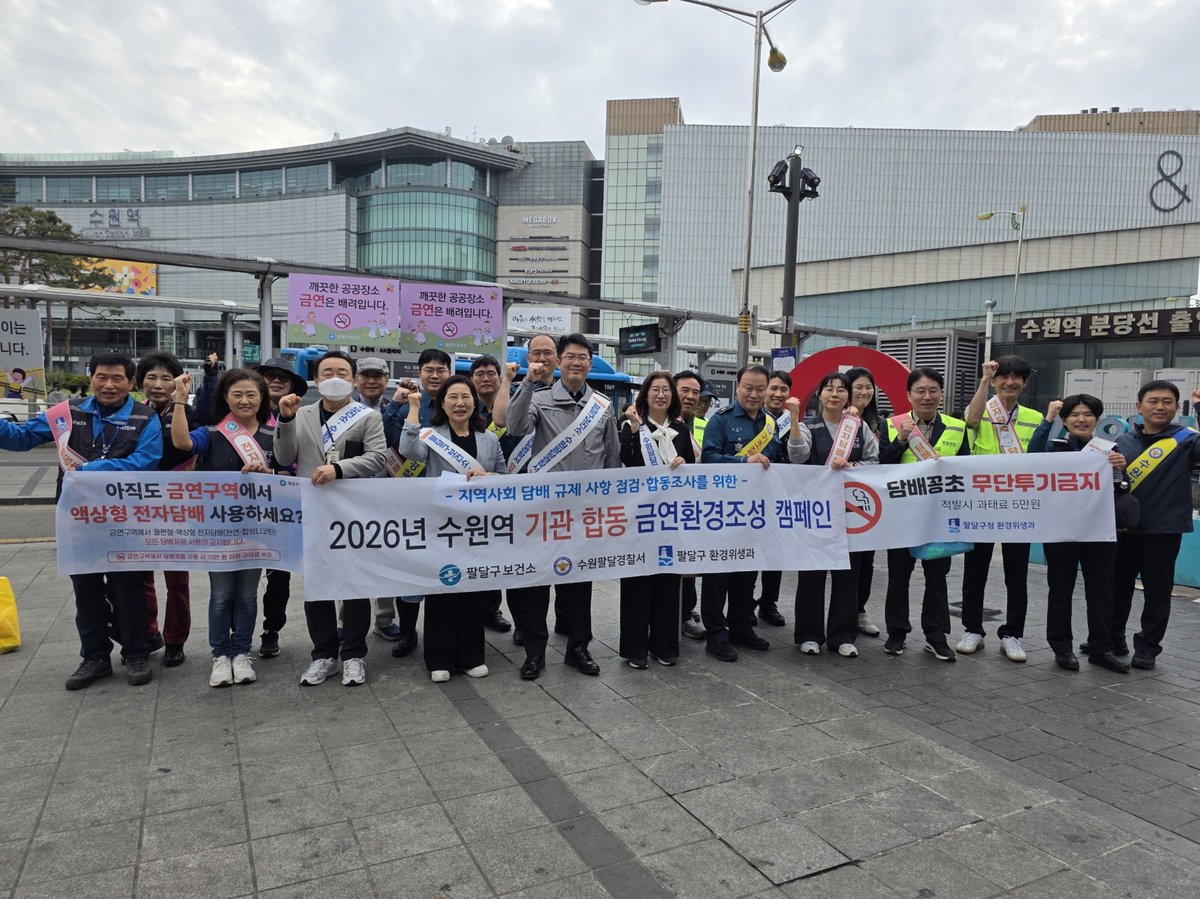 [충청뉴스큐] 수원시 팔달구보건소는 17일 수원역 일원에서 ‘금연환경조성 합동 캠페인’을 펼쳤다.