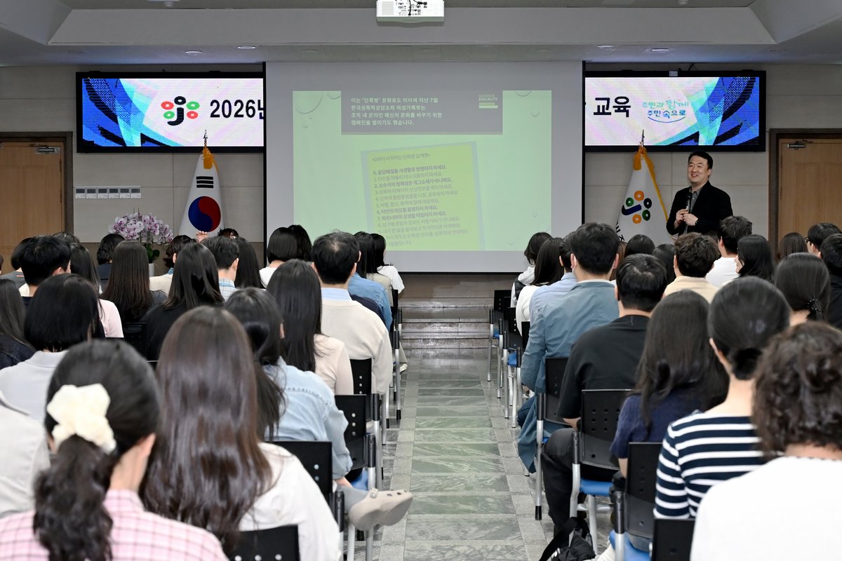 이번 교육은 조직 내 성평등 인식을 확산하고 건강한 직장문화를 조성하기 위해 직무와 직급 특성을 반영한 사례 중심 맞춤형 과정으로 마련됐다.