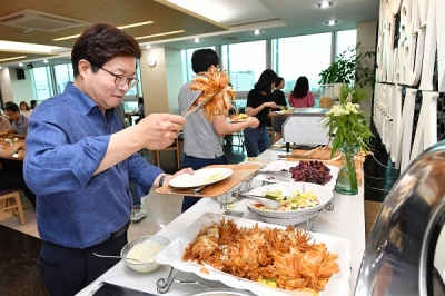 양파 소비 촉진을 위해 지난달 27일에는 시청 구내식당 조식 메뉴로 양파 요리를 준비하기도 했다. 이날 염태영 수원시장은 식사를 마치고 개인 SNS에 “하루 한 끼는 양파 요리를 먹자”고 글을 게시했다.