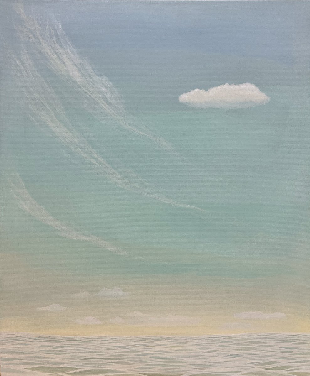 화면 위에 반복되는 물결의 흐름과 옅은 색층, 부유하듯 떠 있는 구름의 형상은 하나의 장면이 아니라 존재가 생성되고 흩어지는 과정 자체를 드러낸다.