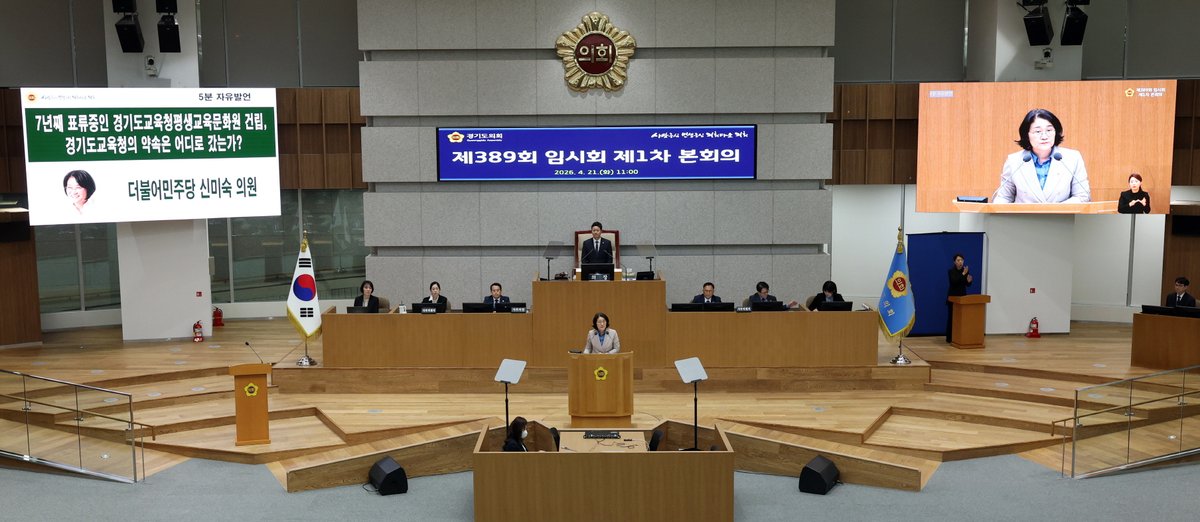 [충청뉴스큐] 경기도의회 교육기획위원회 신미숙 의원은 21일 제389회 임시회 제1차 본회의에서 진행한 5분 자유발언을 통해, 2019년부터 현재까지 표류중인 ‘경기도교육청평생교육문화원’건립 지연을 강하게 질타하며 경기도교육청의 책임감있는 결단을 촉구했다.