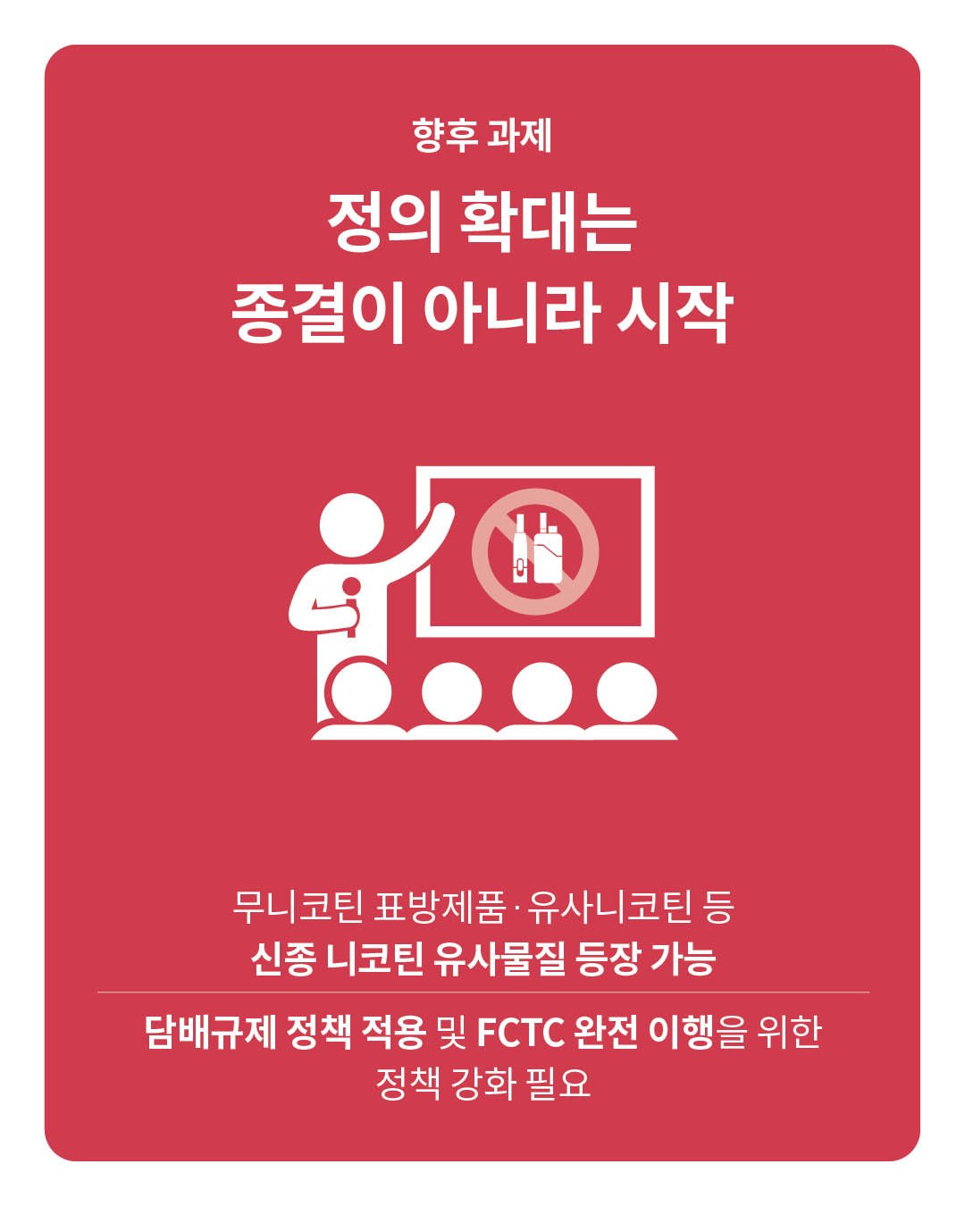 아울러 9개 구·군 보건소에서는 시민들의 혼선을 최소화하기 위해 현수막, 전광판, 홈페이지, 소식지, SNS 등 다양한 매체를 활용해 확대된 담배의 정의와 관련 규제 사항을 적극 홍보하고 있다.