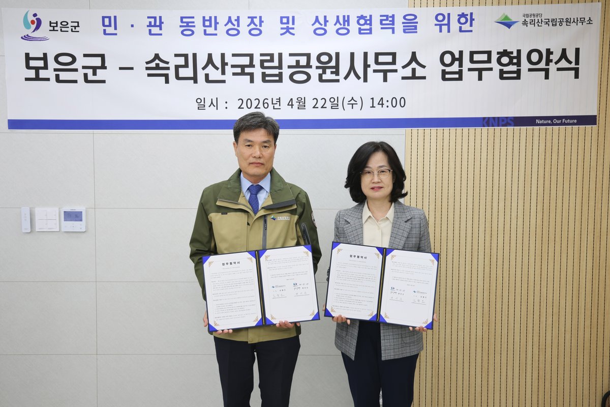 변인순 군수권한대행은 “속리산국립공원의 자연자원과 보은군 특산물이 결합해 지역경제에 새로운 활력을 더하는 계기가 될 것으로 기대한다”며 “지역기업과의 협력을 바탕으로 판로 확대와 소득 증대로 이어지는 실질적인 성과를 만들어가겠다”고 말했다.