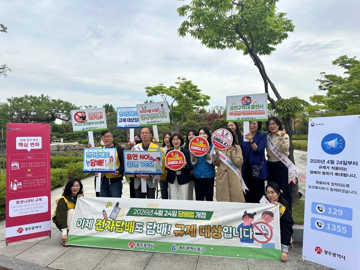 [충청뉴스큐] 광주광역시는 24일 ‘개정 담배사업법’ 시행에 맞춰 시민 건강 보호와 금연환경 조성을 위한 ‘담배 없는 금연환경 조성 캠페인 및 집중 점검’을 실시하고 있다.