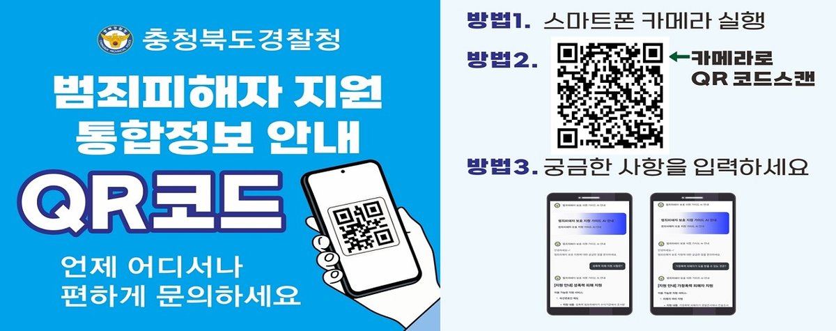 지원언어 계속해서 확대 예정 ’ 25.6월 기준 법무부 통계 충북경찰청은 시스템 접근성을 높이기 위해 피해자 보호 지원 챗봇 접속 QR코드를 홈페이지에 게시하고 일선 경찰서에서는 QR코드가 인쇄된 안내용 명함을 배부할 예정이며 스마트폰이나 PC사용이 익숙하지 않은 피해자에게는 담당 경찰관이 직접 시스템 이용을 도울 계획이다.