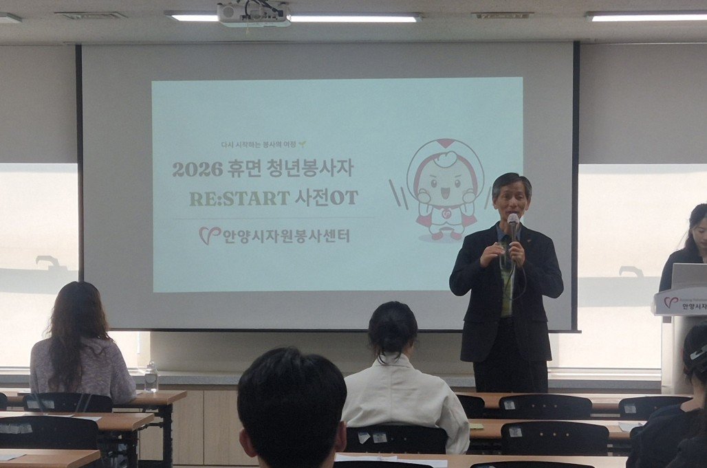 [충청뉴스큐] 안양시자원봉사센터는 지난 24일과 25일 양일간 센터 교육장에서 ‘2026년 휴면청년봉사자 RE:START'사업의 시작을 알리는 사전 오리엔테이션을 개최했다’휴면청년봉사자 RE:START'는 학업이나 취업 준비 등으로 봉사활동을 잠시 중단했던 청년들이 다시 사회와 연결되고 자원봉사 실천을 통해 자신의 강점을 발견하며 균형 있는 성장을 도모할 수 있도록 지원하는 사업이다.