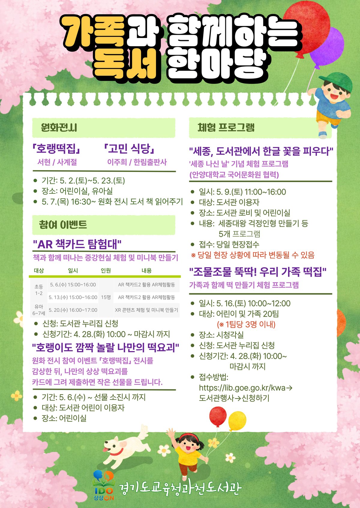 [충청뉴스큐] 경기도교육청과천도서관이 5월 가정의 달을 맞아 ‘가족과 함께하는 독서 한마당’을 운영한다.