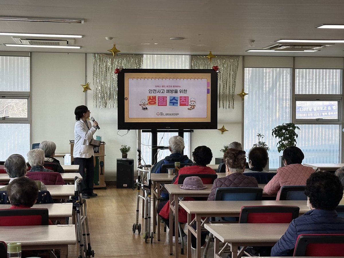 이번 교육은 일상생활에서 발생할 수 있는 안전사고 예방을 주제로 기본 생활 수칙 안내와 함께 인공지능 트로트 음악에 맞춘 라텍스 밴드 생활 체조 활동으로 구성됐다.