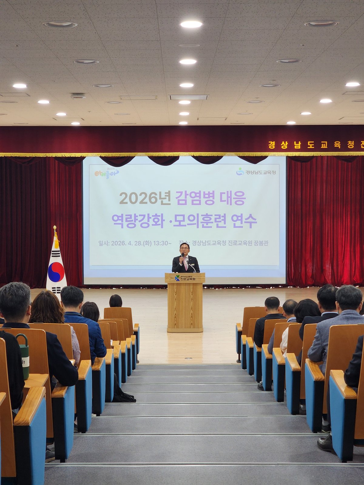 [충청뉴스큐] 경상남도교육청은 28일 경상남도교육청 진로교육원에서 학교 관리자와 보건교사, 교육지원청 관계자 등 170여명을 대상으로 ‘2026년 감염병 대응 역량 강화 및 모의훈련 연수’를 개최했다.