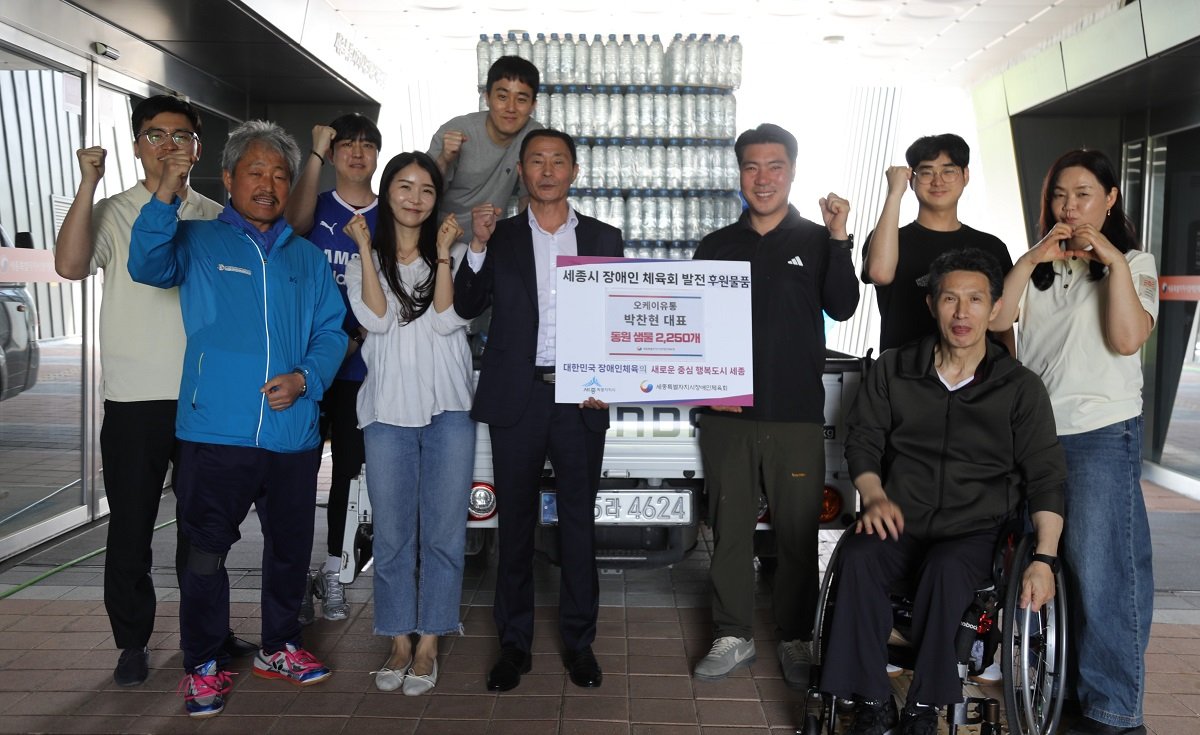 [충청뉴스큐] 세종시장애인체육회가 지난 28일 오케이유통으로부터 생수 500 2250개를 전달받았다.