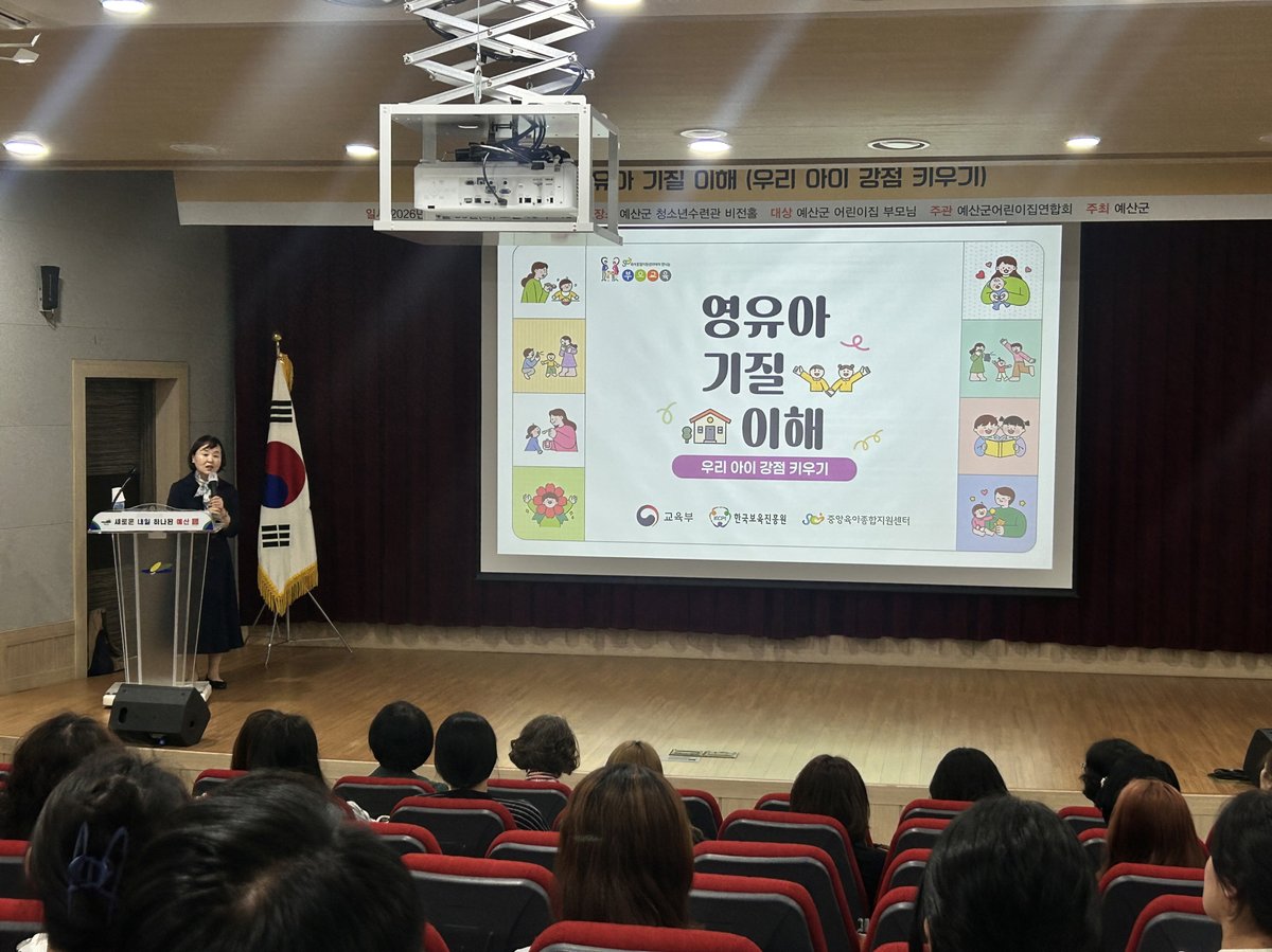이번 교육은 예산군어린이집 주관으로 영유아기 자녀의 발달 특성을 이해하고 가정 내 긍정적인 양육환경 조성을 돕기 위해 마련됐다.