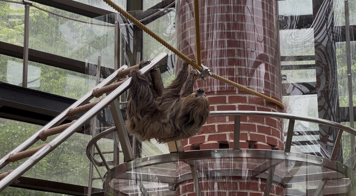 이에 우치동물원은 지상 5m 높이에 나무늘보가 자유롭게 매달리기 위한 줄을 설치, 관람객 머리 위로 나무늘보가 이동할 수 있도록 사육 공간을 조성했다.