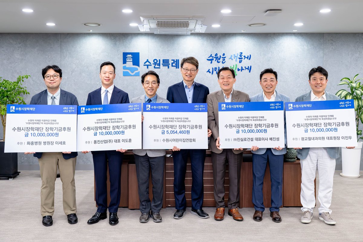 이재준 수원특례시장은 “지역사회 청소년들을 위해 꾸준히 따뜻한 마음을 나눠주시는 장학재단 이사님들과 기업·단체, 어린이들의 정성을 모아주신 어린이집연합회 임원들에게 감사드린다”며 “수원시 아이들이 더 좋은 환경에서 꿈을 이룰 수 있도록 힘쓰겠다”고 밝혔다.