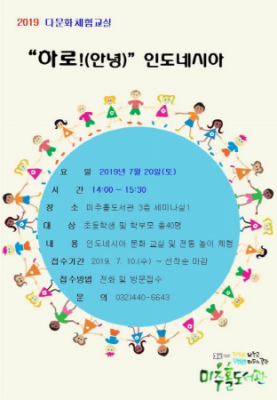 [충청뉴스큐] 인천광역시 미추홀도서관은 오는 20일 오후 2시 세미나실1에서 다문화 체험교실 “하로 인도네시아”을 진행한다.