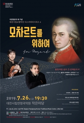 [충청뉴스큐] 대전시립교향악단이 오는 26일 오후 7시 30분 대전시립연정국악원 작은마당에서 디스커버리 시리즈 4‘모차르트를 위해’ 연주회를 연다.