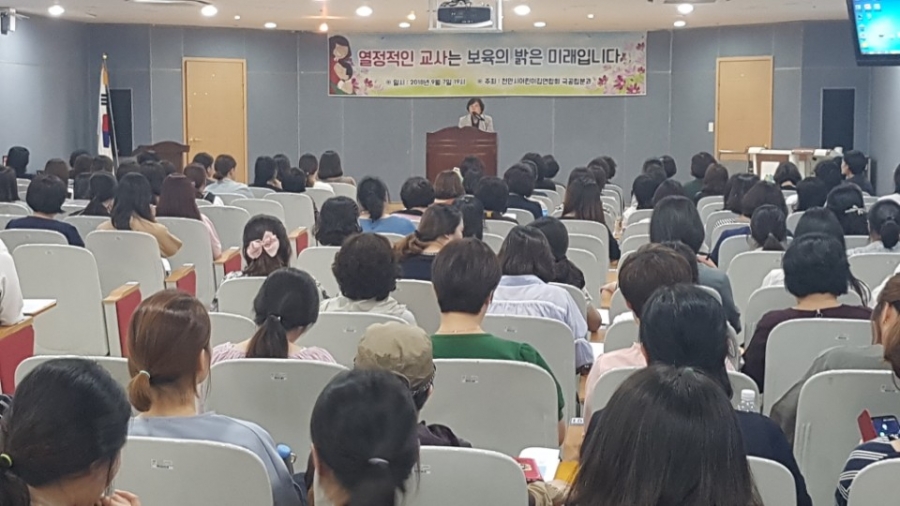 천안지역 보육서비스 개선을 위한 ‘교사 마인드 향상 및 안전교육’이 지난 7일 오후 천안축구센터에서 열렸다. 이번 교육은 천안시어린이집연합회 국공립분과가 27개 국공립어린이집 원장과 교사 200명을 대상으로 ‘열정적인 교사는 보육의 밝은 미래이다’라는 주제로 진행했다. 이날 성환어린이집이 올 상반기에 실시한 교수-학습법 멘토사업 결과를 발표하고, 취약보육(24시간, 시간제보육)의 우수사례를 성정어린이집과 보듬이나눔이어린이집이 발표했다. 이어 정정옥 천안시육아종합지원센터장이 ‘국공립어린이집 교사 마인드 향상 및 안전교육’ 강의를 제공했다. 교육에 참여한 원장과 교사들은 다른 어린이집의 좋은 운영 사례와 다양한 정보 교류로 보육업무에 큰 도움이 됐으며 공보육에 책임감과 자긍심이 향상됐다고 소감을 전했다. 한편, 천안시는 상반기에 국공립어린이집 2개소(백석행복어린이집, 성성푸른어린이집)를 개원했으며, 하반기에는 4억4000만원의 예산 투입해 4개소 개원 추진 중으로 공보육 인프라를 꾸준히 구축해 나가고 있다. 전재숙 국공립분과장은 “학부모들이 국공립어린이집을 선호하는 이유가 시설뿐만 아니라 믿을 수 있는 안심 보육이 가능하기 때문”이라며 “공보육을 책임지는 원장과 교사들이 학부모의 기대에 부응하기 위해 자기계발의 필요성을 자각해 이번 교육을 자체 추진하게 됐다”고 밝혔다. 박미숙 천안시 복지문화국장은 원장과 교사들을 크게 격려하며 “국공립어린이집 원장과 교사들이 보육품질을 위해 끊임없이 자기계발에 노력하고, 책임 있는 보육에 앞장서는 모습에 감사하다”며 “앞으로 더욱 나은 보육현장을 만들도록 함께 노력하겠다”고 말했다.