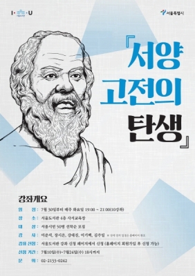[충청뉴스큐] 서울도서관은 오는 30일부터 10월 1일까지 매주 화요일, 서울도서관 사서교육장에서 ‘서양 고전의 탄생’ 인문학 강좌를 총 10회 운영한다고 밝혔다.