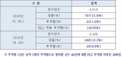 지난해 1월부터 6월31일까지 진행된 4,438건의 전체 검사 중 40건의 부적합이 발생, 0.9%의 부적합률을 기록했던 지난해 같은 기간에 비해 0.1% 증가한 수치다.