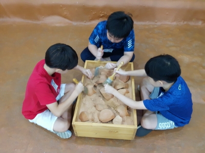 어린이들이 직접 유물을 발굴하는 과정과 발굴된 토기에 복원제를 활용해 발굴된 토기를 복원하는 체험을 할 수 있다. 각 모둠별로 협동 작업을 하거나 경쟁하는 방식으로 진행되며, 획득한 점수를 모두 합해 가장 높은 모둠에는 모범상을 수여한다. 모둠별 교육프로그램을 통해 협동심을 기르고, 고고학 및 선사시대에 대한 흥미와 관심을 높일 수 있도록 해준다.
