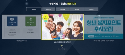 가장 많은 관심을 받은 정책은 ‘2019 경기도 청년 기본소득’이었고, ‘2019 청년노동자 지원사업-복지포인트’, ‘청년구직활동지원금’이 그 뒤를 이었다.