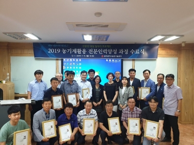 [충청뉴스큐]광주광역시농업기술센터는 15일 ‘신중년 일자리 프로젝트’ 교육생 18명을 대상으로 ‘농기계 활용 전문인력양성 과정’ 수료식을 개최했다.