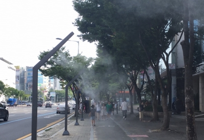 시는 시범적으로 시내버스승강장 1곳과 으능정이거리 등 5곳에 쿨링포그를 추가 설치 중이다.