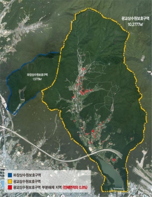 이번에 고시된 지역은 광교상수원보호구역 내 환경정비구역 중 사유지로 총 8만 34㎡다. 지목(地目)이 대지인 7만 930㎡와 기존 건축물 중 단독주택 건물 부지인 9104㎡다.