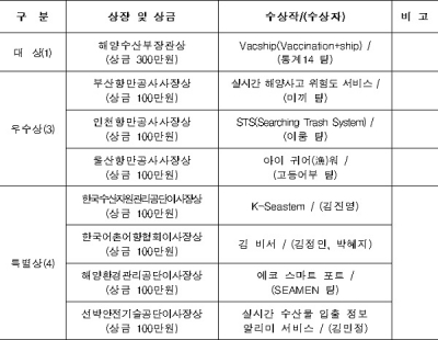 이번 대회는 해양수산 분야의 공공·빅데이터를 활용하여 창의적인 아이디어를 발굴하고, 창업과 일자리 창출을 촉진하기 위해 개최됐다. 해양수산부는 4월 2일부터 5월 31일까지 두 달간 공모를 진행하고, 공공데이터와 빅데이터 2개 부문에 출품된 67편의 응모작 중 최종적으로 11편의 수상작을 선정했다.