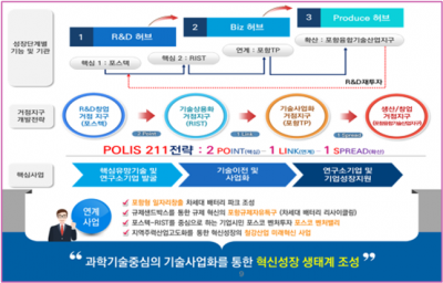 포항 연구개발특구 내용은 과학기술 기초연구·창업 - 기술 상용화 - 기술 사업화 - 생산 - R&D 재투자까지 원스톱 연결 플랫폼을 구축해 과학기술 중심의 기술사업화를 통한 혁신성장 생태계를 조성한다.