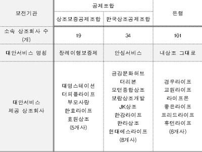 또한, 대안서비스는 폐업한 상조회사와 동일한 보전기관을 이용하는 상조회사에서만 받도록 돼 있어 소비자들이 선택할 수 있는 상조회사가 제한됐다.