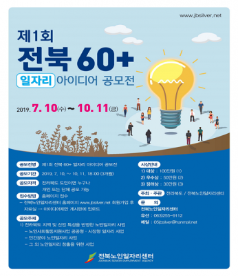 [충청뉴스큐] 전북도와 전북노인일자리센터는 도민을 대상으로 ‘제1회 전북 60+ 노인일자리 아이디어 공모전’을 실시 중이다.
