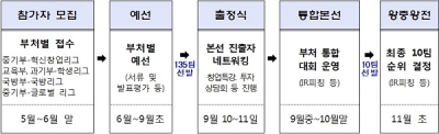 이날 행사에는 본선대회 시작을 알리는 ‘출정식’과 투자 및 IR발표 특강, 벤처투자 컨벤션 등 다채로운 프로그램과 함께 스타트업과 투자자 등이 소통하는 네트워킹 시간이 이튿날까지 열릴 계획이다.