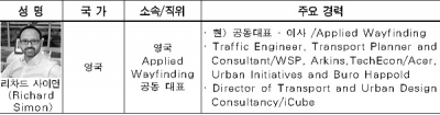 이번 세미나에 참석하는 해외연사는 리차드 사이먼, 조지윅스, 테아커디, 온니 아이크 하오그이며, 특히 기조연설을 맡은 리차드 사이먼은 세계에서 가장 선구적인 보행자용 도시 길찾기 시스템인 Legible London을 고안하고 구축한 어플라이드 웨이파인딩사의 대표이사로, 런던, 뉴욕, 마드리드, 밴쿠버 등 세계 여러 도시의 길찾기 시스템을 위한 도시 및 교통 계획 업무를 주도하고 있다.