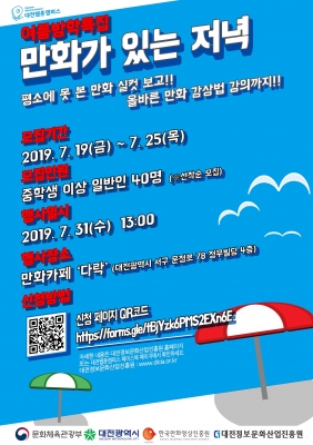 [충청뉴스큐] 대전시와 대전정보문화산업진흥원은 만화에 대한 시민 관심도 증대를 위해 대전웹툰캠퍼스의 ‘만화가 있는 저녁’ 프로그램 참가자를 모집한다고 22일 밝혔다.