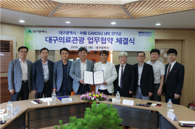 [충청뉴스큐] 대구시는 지난 23일 온 · 오프라인 매장을 가지고 중국 각 지역에서 사업을 확장 중에 있는 중국 유통업체 ‘가로수 라이프스타일’과 의료관광객 유치를 위한 업무협약을 맺었다. 이번 업무협약으로 중국 단체의료관광객 유치 활성화에 많은 도움이 될 것으로 보인다.