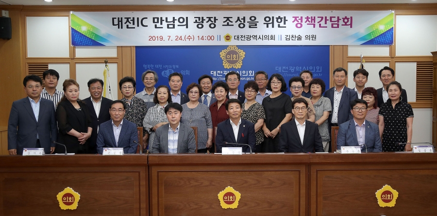 대전광역시의회 김찬술 의원은(대덕구, 더불어민주당) 24일 오후 2시 대전광역시의회 대회의실에서 ‘대전IC 만남의 광장 조성을 위한 정책간담회’를 개최했다. 이번 간담회는 불법 주·정차문제 및 보행환경 위험에 노출된 비래동 주민들이 제기한 불편사항에 대해 합리적 해결 방안을 찾고자 마련됐다. 간담회에는 대전시 교통건설국장, 환경녹지국장, 도시재생주택본부장 그리고 대덕구 안전도시국장이 참석하여 비래근린공원을 만남의 광장으로 조성하여 주차면수 500면 이상을 확보하는 방안, 도로부지를 활용하여 버스 정차대를 조성하는 방안 등에 대해 열띤 토론을 벌였다. 이어서 간담회를 진행한 김 의원은“만남의 광장을 어떻게 계획하고 조성하느냐에 따라 지역주민의 민원해결과 대전IC 이용객의 편의성에 많은 영향을 미칠 것”임을 강조하고 “인근 주민들과 이용객이 함께 상생할 수 있도록 대전시와 대덕구가 함께 합리적인 대책을 마련해 줄 것”을 당부했다.