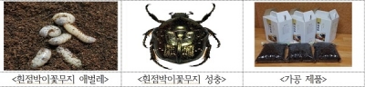 곤충자원별 신고자와 판매액은 흰점박이꽃무지 1,195개소, 장수풍뎅이 415개소, 귀뚜라미 384개소, 갈색거저리 282개소, 사슴벌레 158개소 순이었으며, 지역별로는 경기도가 501개소, 경북 398개소, 경남 238개 순으로 나타났다.