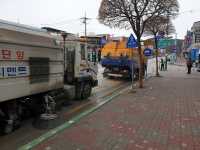 지난 4월 15일에는 새봄맞이 깨끗한 시가지 조성을 위한 민·관·기업이 참여하는 국토대청결 운동의 일환으로 향토기업 노면청소차 6대가 참여해 단양읍 도심 시가지 퇴적 토사 및 쓰레기 제거, 물청소 등을 함께했다.