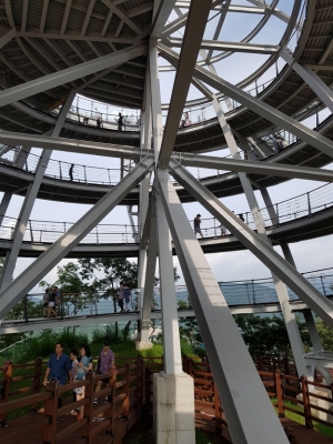 관광 단양의 랜드마크로 알려진 만천하스카이워크는 해발 320m에 달걀을 비스듬하게 세워놓은 30m 높이의 아치 철골구조물이다.