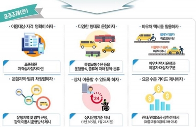 국토교통부는 교통약자 특별교통수단이 지자체마다 상이하게 운영되어 지역별로 서비스 차별이 발생하는 문제점 개선을 위해'교통약자 특별교통수단 등 운영에 관한 표준조례'를 마련하여 시행한다고 밝혔다.